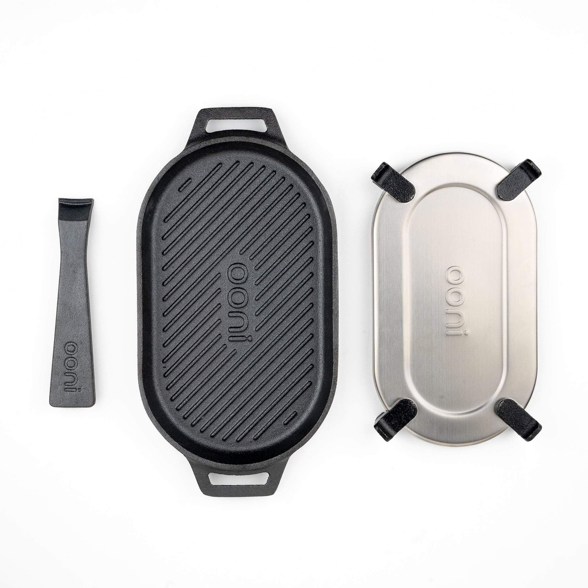 This premium cast iron pan brings together the versatility of our Sizzler pan with the distinctive mouth-watering grill marks you can only get from a griddle pan – because after all, the first bite is with the eye! Meats and veggies seared on the Ooni Grizzler are out of this world!