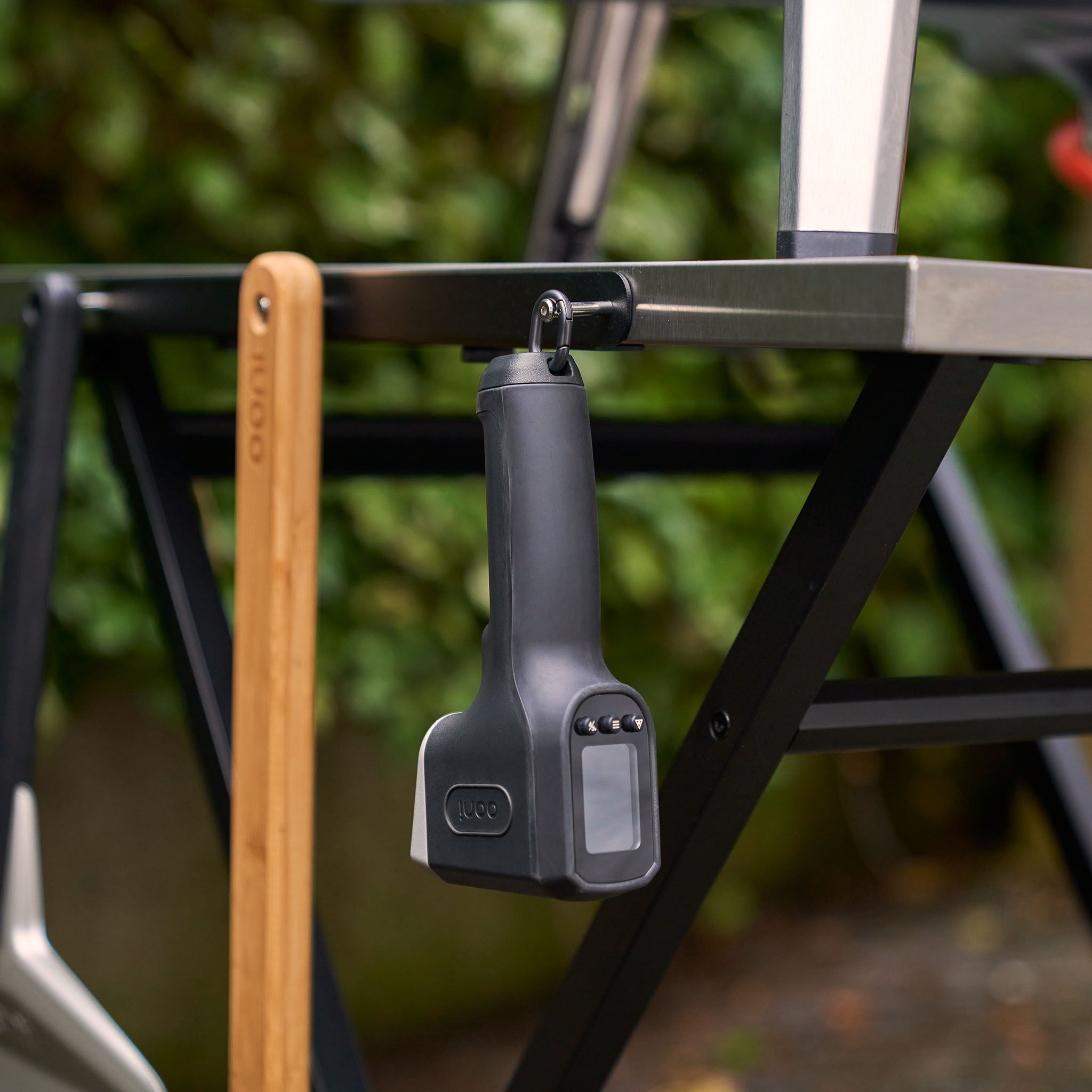 Designed for use during heat up and recharge periods, the Ooni Digital Infrared Thermometer ensures you always have a clear understanding of when your pizza stone is ready to cook. Numerical and color-coded temperature displays allow you to select your preferred interface and switch effortlessly between laser-guided spot measurements and wider area scans.